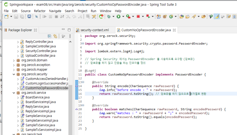 6. org.zerock.security.CustomNoOpPasswordEncoder.java를 생성합니다.