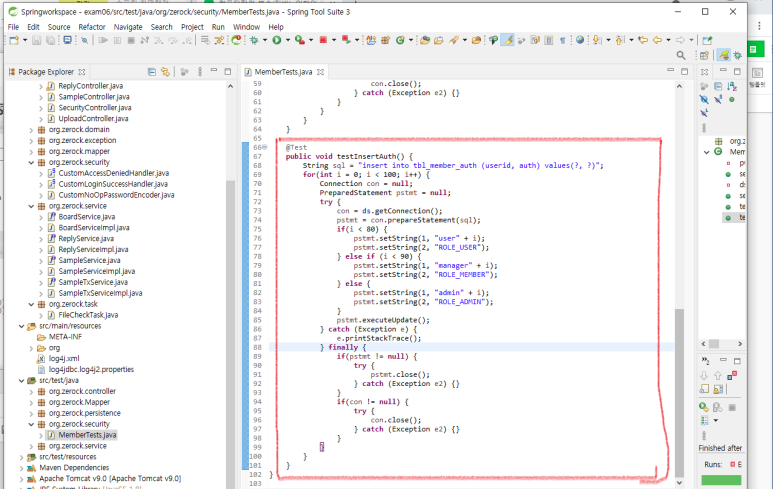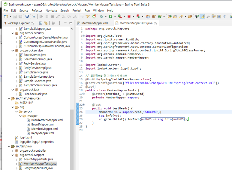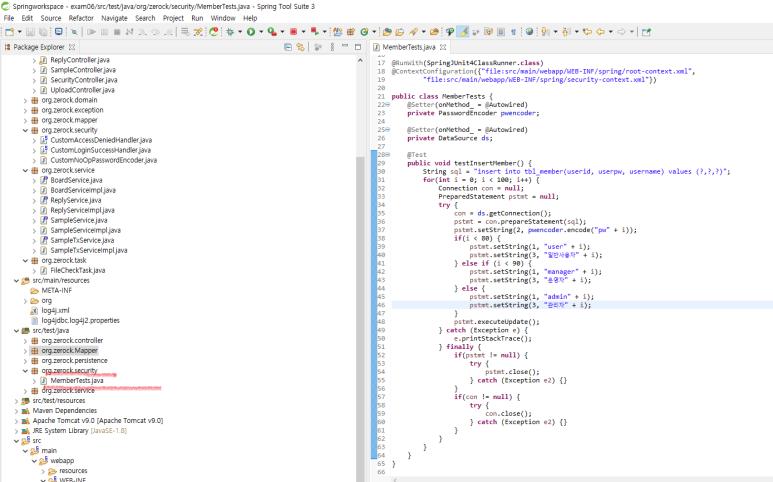 src/test/java/org.zerock.security.MemberTests.java 를 생성하고 테스트합니다.