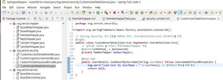 4. security-context.xml 에 CustomUserDetailsService 에 관한 bean을 생성하고 ,