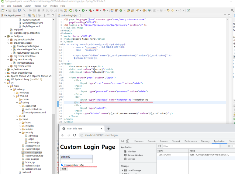 3. customLogin.jsp 에 checkbox 를 넣습니다. name="remember-me" 여야 합니다.