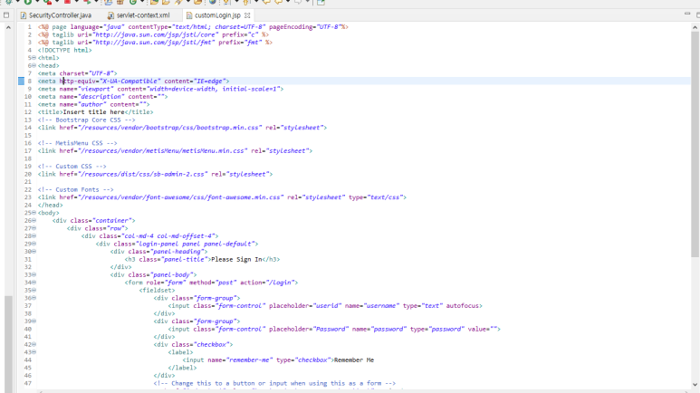 1. customLogin.jsp를 bootstrap을 사용할 수 있게 구성합니다. 해당 내용은 파일첨부도 하겠습니다.