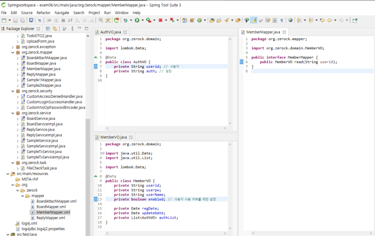 MemberVO.java, AuthVO.java, MemberMapper.java(인터페이스)