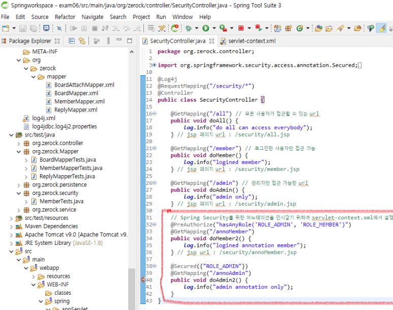 2. SecurityController.java 에 Spring Security @ 을 사용하는 메소드를 추가합니다.