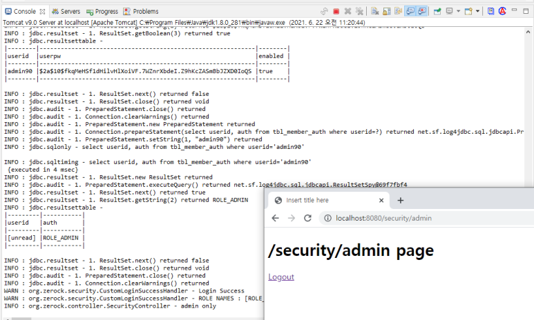 1. security-context.xml 에서 username 과 authroities 권한을 검색하는 sql문을 이용해서도 인증할 수 있습니다.