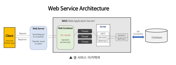 ※ 웹 컨테이너 : 웹 서버가 보낸 JSP, PHP 등의 파일을 수행한 결과를 다시 웹 서버로 보내주는 역할을 함